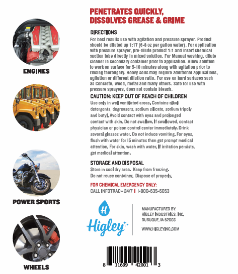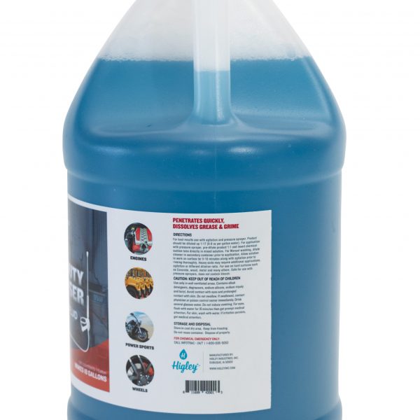 Quickly remove grease build-up on many surfaces. One gallon makes up to 18 gallons. For best results use with agitation and pressure sprayer. Product should be diluted up 1:17 (6-8 oz per gallon water). For application with pressure sprayer, pre-dilute product 1:1 and insert chemical suction tube directly in mixed solution. For Manual washing, dilute cleaner in secondary container prior to application. Allow solution to work on surface for 5-10 minutes along with agitation prior to rinsing thoroughly. Heavy soils may require additional applications, agitation or different dilution ratio. For use on hard surfaces such as Concrete, wood, metal and many others. Safe for use with pressure sprayers, does not contain bleach.